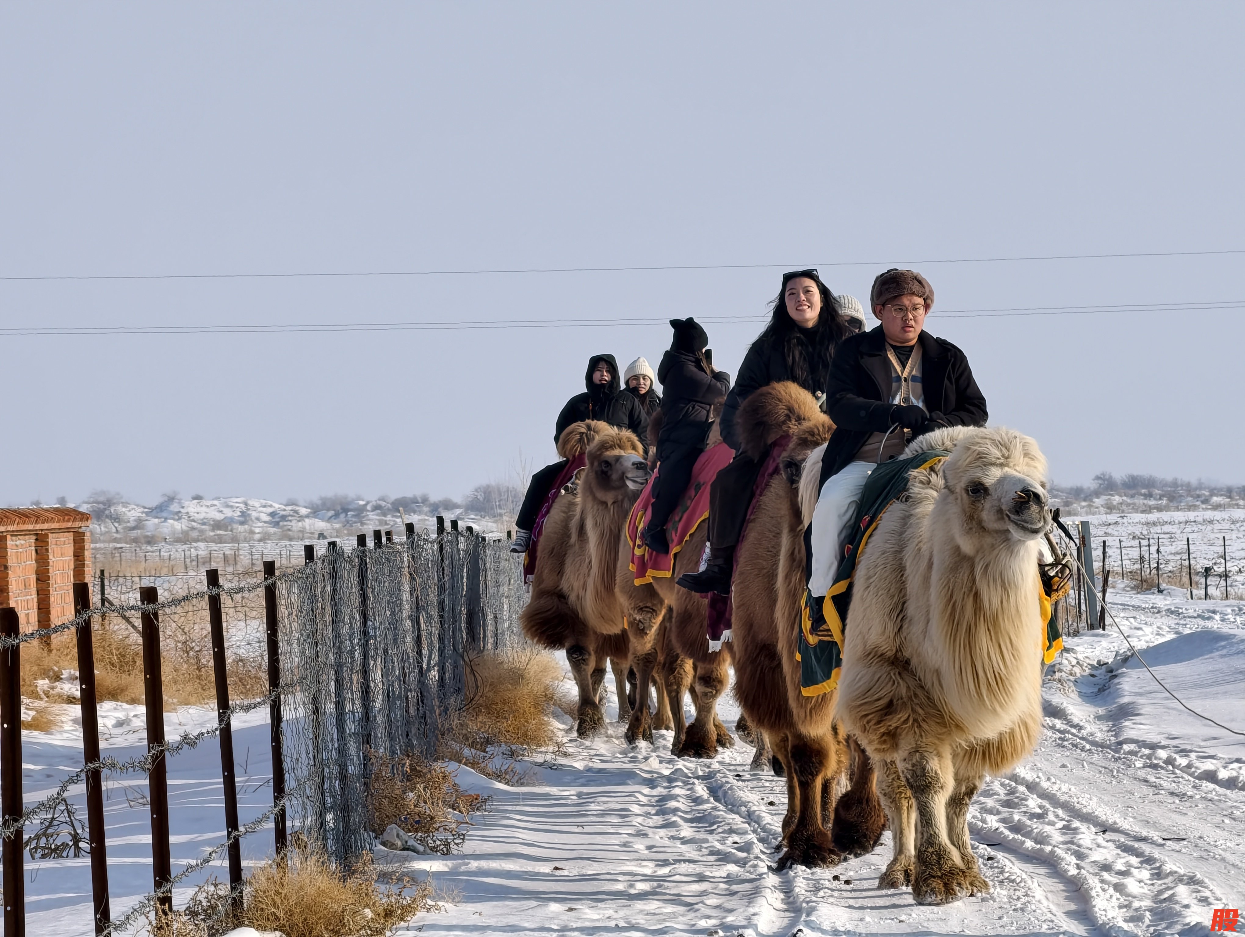 蜿蜒驼队深入雪原