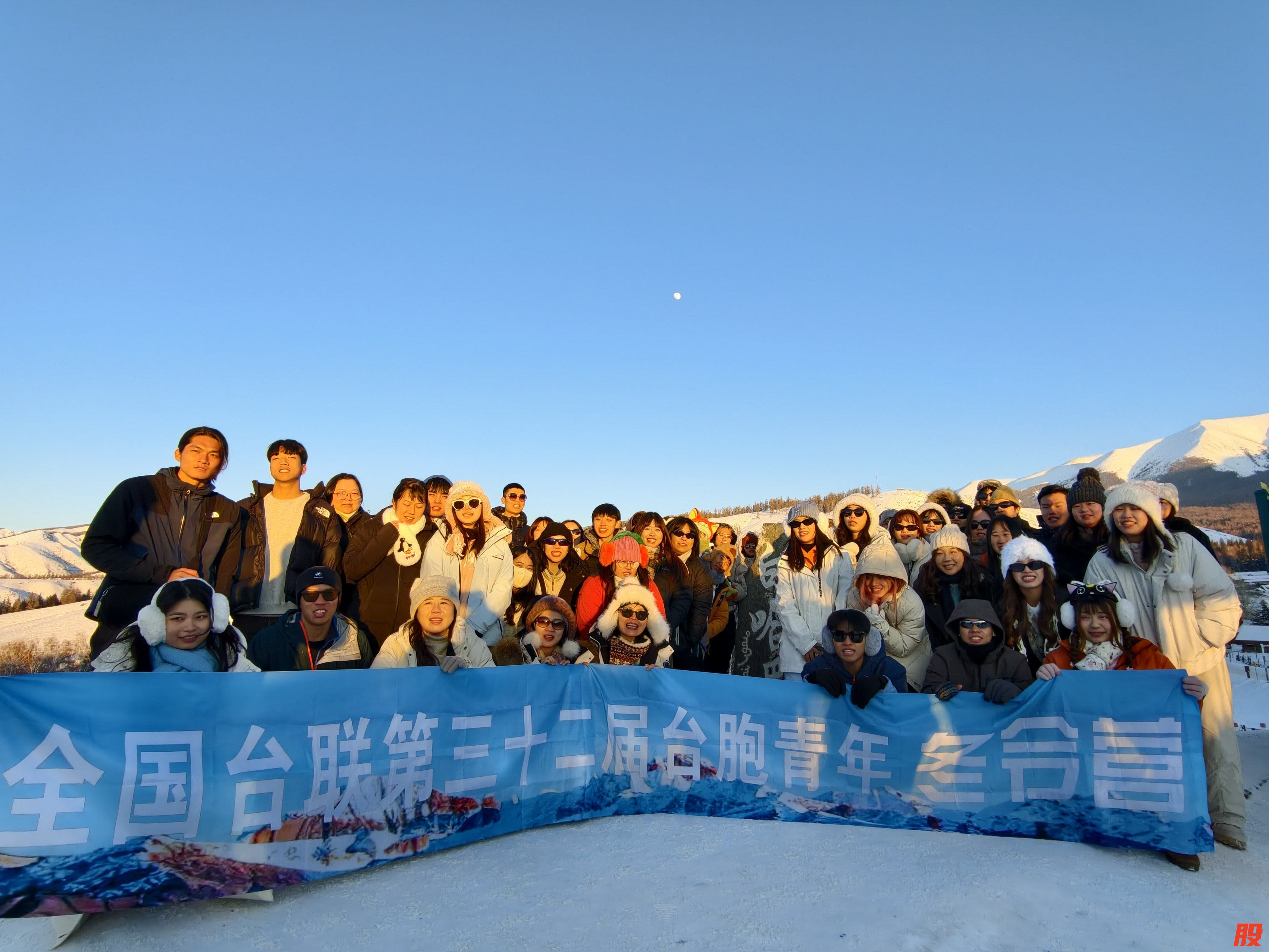 1月30日,全国台联第三十二届台胞青年冬令营兵团分营成员在新疆阿勒泰合影。新华社记者 贺小童 摄
