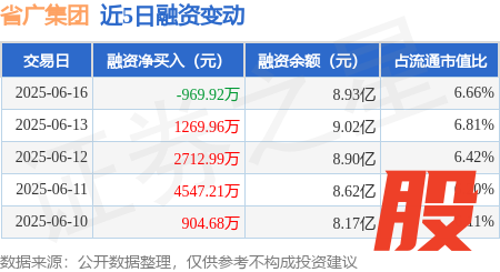 本站消息,6月16日财富策略,省广集团(002400)融资买入6449.76万元,融资偿还7419.68万元,融资净卖出969.92万元,融资余额8.93亿元。