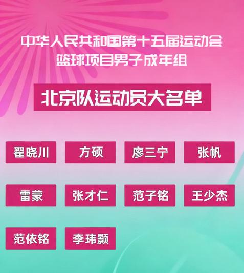 雷速体育11月1日讯 根据媒体人“勇方方”发文:北京男篮今日出征前往东莞,丘天和邹雨宸确定缺阵壹策略,不出意外就是名单上这些位出战啦壹策略,第一场比赛下周三开打,全运加油,力争好成绩。